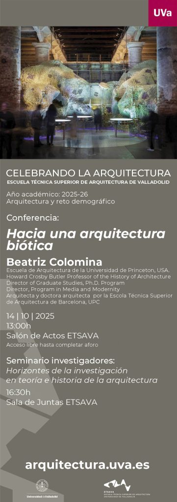 La ETSAVA se suma a la celebración del Día Mundial de la Arquitectura con un programa excepcional, que el próximo día 14 traerá a la reconocida historiadora y teórica de la arquitectura Beatriz Colomina a nuestra Escuela, con la conferencia Hacia una arquitectura biótica.