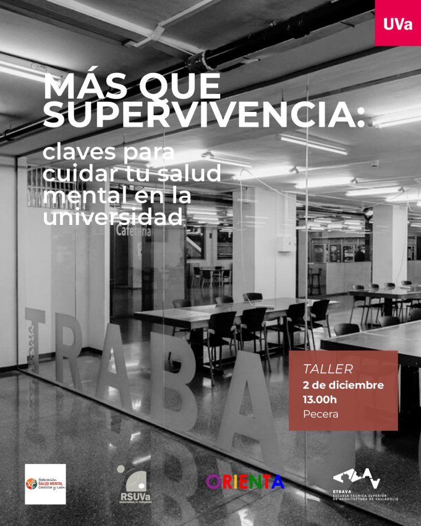 La Federación Salud Mental en Castilla y León, en colaboración con el Servicio de Información y Orientación Psicológica de RSUVa, realizará un taller sobre salud mental y bienestar emocional el próximo martes 2 de diciembre en el espacio de “Pecera”. Durante la sesión, se trabajarán temas clave como: