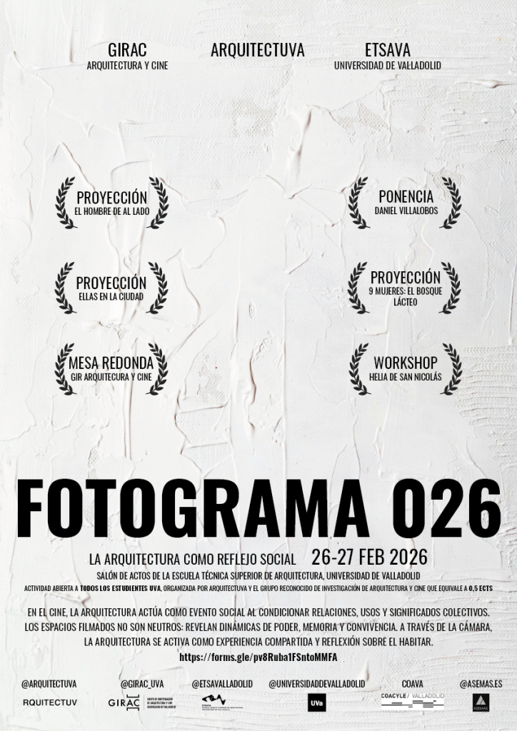 Si estudias Arquitectura, Comunicación, Bellas Artes, Historia, Sociología… o simplemente te interesa cómo el cine transforma nuestra forma de habitar el mundo, este plan es para ti. La actividad está abierta a todos los estudiantes de la Universidad de Valladolid reconocida con 0,5 ECTS.